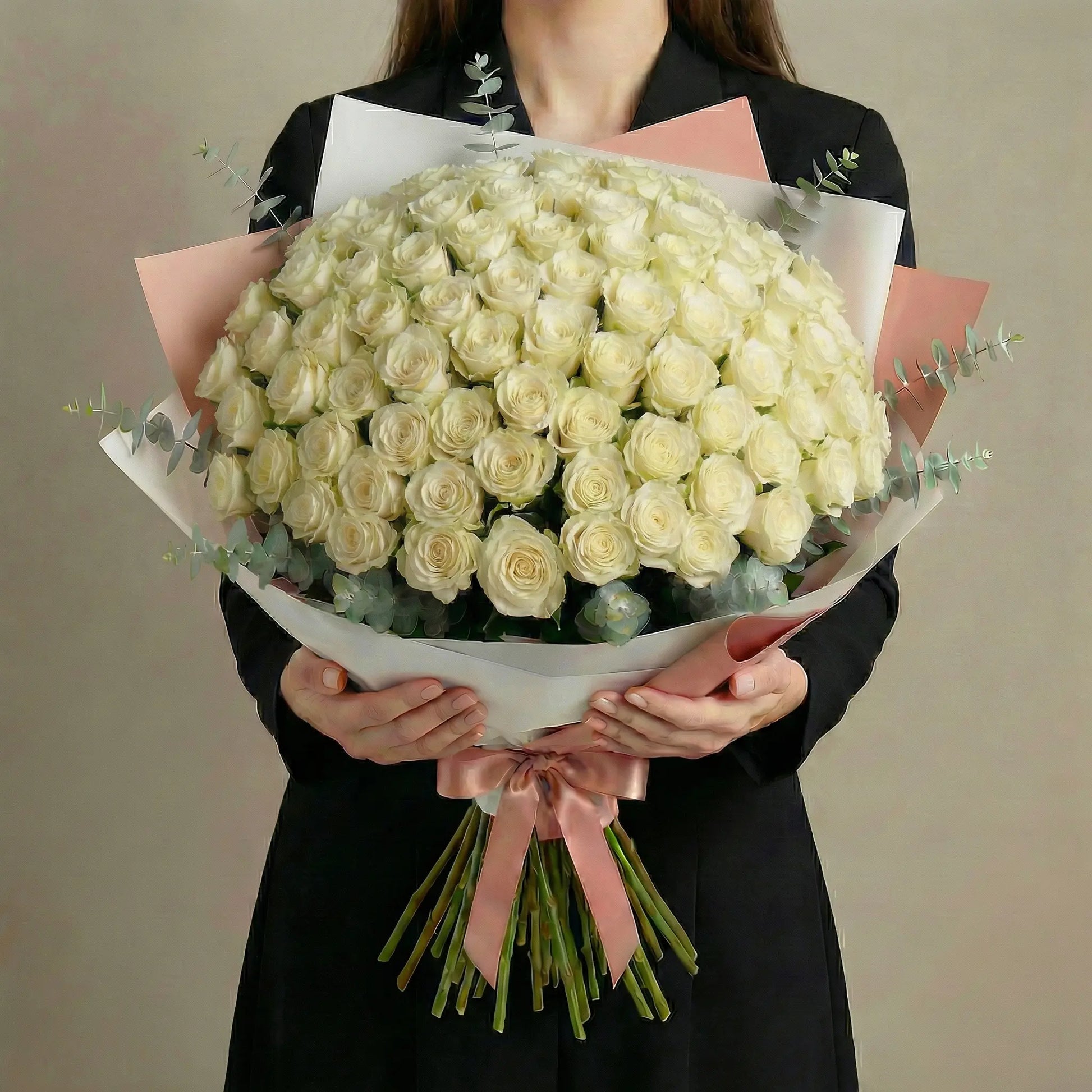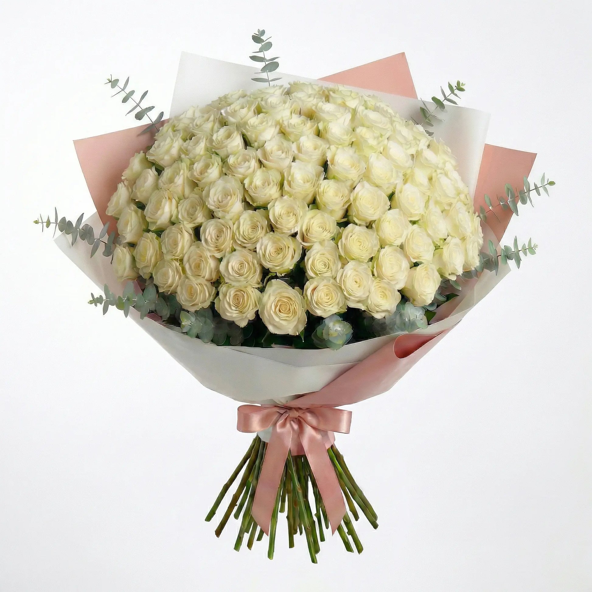 High-End Bouquet of 100 White Roses